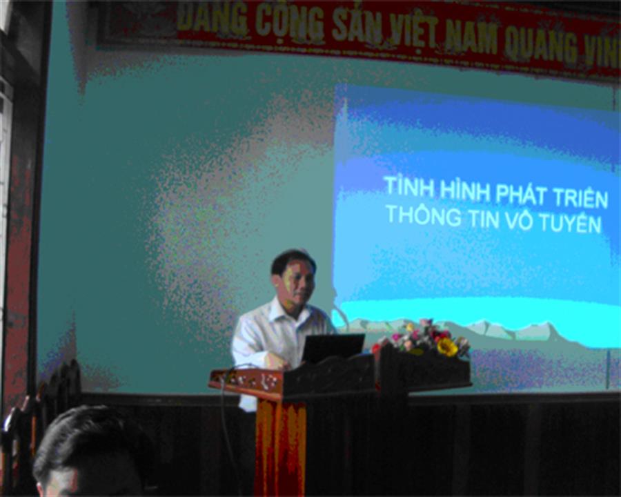 Tại buổi tập huấn, đồng chí Đoàn Quang Hoan - Cục trưởng Cục tần số vô tuyến điện đã giới thiệu về các ứng dụng của tần số vô tuyến điện trong các lĩnh vực khác nhau như thông tin di động, phát thanh truyền hình, hàng không, hàng hải,…, các xu hướng phát triển của thông tin vô tuyến điện hiện tại và tương lai, một số vấn đề mới trong dự thảo luật tần số vô tuyến điện đã trình ra quốc hội tại kỳ họp thứ 5 Quốc hội khóa 12 vừa rồi và dự kiến sẽ được thông qua vào kỳ họp thứ 6 Quốc hội khóa 12 vào cuối năm nay.