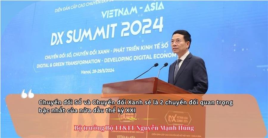 Đó là khẳng định của Bộ trưởng Bộ TT&TT Nguyễn Mạnh Hùng, Phó Chủ tịch Ủy ban Quốc gia về Chuyển đổi số tại Hội nghị thượng đỉnh Chuyển đổi số Việt Nam - châu Á 2024 (Vietnam - Asia DX Summit 2024), chủ đề "Số và Xanh để thúc đẩy kinh tế".
