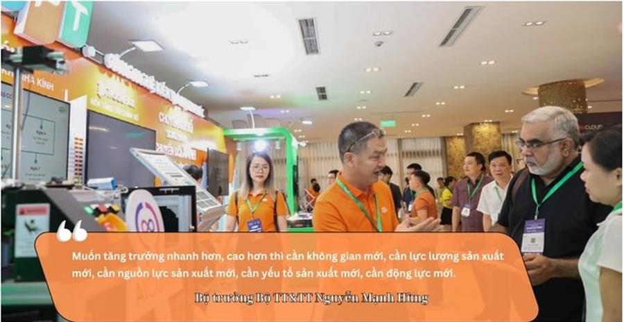 Muốn tăng trưởng nhanh hơn, cao hơn thì cần không gian mới, cần lực lượng sản xuất mới, cần nguồn lực sản xuất mới, cần yếu tố sản xuất mới, cần động lực mới. Không gian mới là không gian mạng. Lực lượng sản xuất mới là công nghệ số. Nguồn lực sản xuất mới là nhân lực số. Yếu tố sản xuất mới là dữ liệu số. Động lực mới là đổi mới sáng tạo (ĐMST) số.