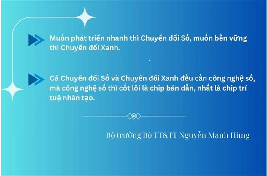 Cả Chuyển đổi Số và Chuyển đổi Xanh đều cần công nghệ số, mà công nghệ số thì cốt lõi là chip bán dẫn, nhất là chip trí tuệ nhân tạo. Bộ TT&TT đã dự thảo xong phiên bản cuối cùng của Chiến lược quốc gia về phát triển chip bán dẫn. Nếu phải nói 3 điều trọng yếu nhất trong chiến lược này thì đó là: Thứ nhất, phát triển chip bán dẫn phải đi cùng chiến lược về công nghiệp điện tử; Thứ hai, Việt Nam sẽ đi từ Hub nhân lực bán dẫn toàn cầu đến công nghiệp bán dẫn; Thứ ba, Việt Nam sẽ là số 1 trong sự dịch chuyển chuỗi cung bán dẫn toàn cầu từ X sang X+1. Bản Dự thảo Chiến lược đang được lấy ý kiến rộng rãi, rất mong được các doanh nghiệp CNS, các hiệp hội quan tâm cho ý kiến.