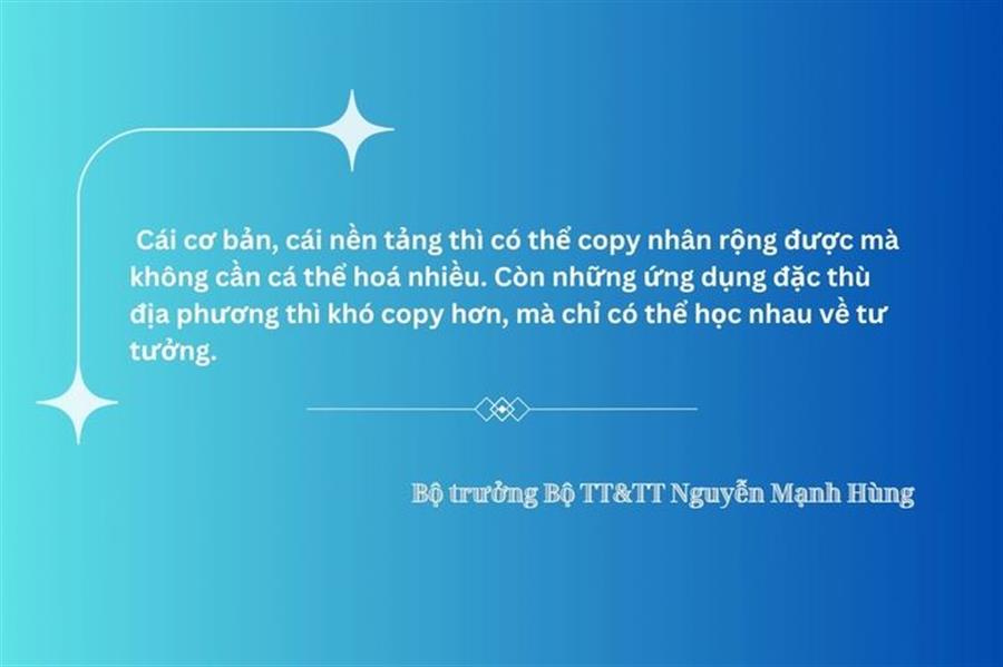 Thứ hai, chuyển đổi số Việt Nam đã qua 4 năm tìm tòi, thử nghiệm, làm mẫu, ứng dụng thành công ở một số Bộ, ngành và địa phương, thì nay đã đến giai đoạn thu hoạch. Tức là giai đoạn nhân rộng ra cả nước, nhất là những cái cơ bản, nền tảng, những cái đã thử nghiệm, đã thành công. Cái cơ bản, cái nền tảng thì có thể copy nhân rộng được mà không cần cá thể hoá nhiều. Còn những ứng dụng đặc thù địa phương thì khó copy hơn, mà chỉ có thể học nhau về tư tưởng.