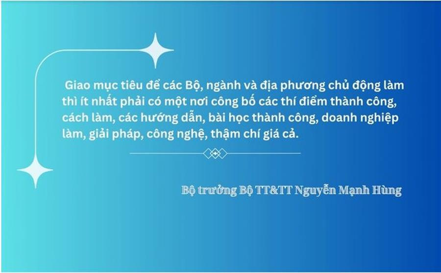 Để trợ giúp cho các Bộ, ngành và địa phương thực hiện các mục tiêu mà Thủ tướng giao, Bộ TT&TT thiết lập một địa chỉ công bố các thử nghiệm thành công, các Bộ, ngành, địa phương đã làm thành công, hoặc các Case Study quốc tế, họ đã làm thế nào, bài học thành công, công ty nào làm, mất bao lâu, thậm chí có thể có cả giá cả và hiệu quả đạt được.