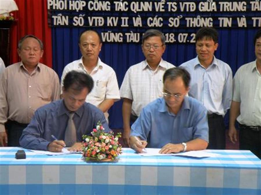 ngày 18 tháng 7 năm 2008, tại thành phố vũng tàu đã diễn ra lễ ký‎ kết văn bản thỏa thuận hợp tác giữa trung tâm tần số vô tuyến điện khu vực ii (trung tâm ii) với các sở thông tin và truyền thông (sở tt-tt) trên địa bàn hoạt động của trung tâm ii, bao gồm thành phố hồ chí minh, tỉnh bình dương, bình phước, tây ninh, đồng nai, long an, tiền giang và bến tre.