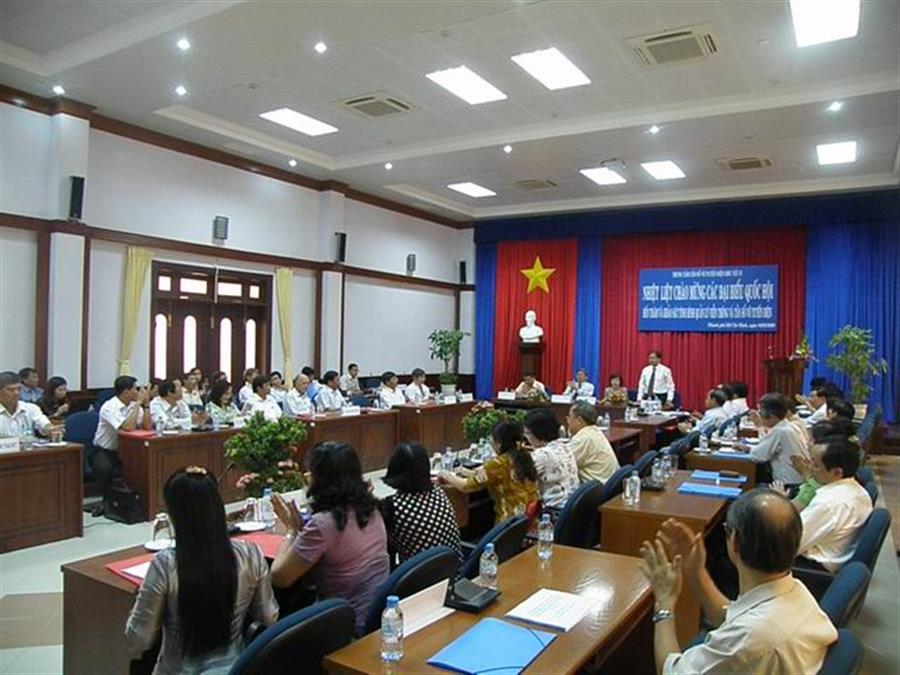 Đoàn đã nghe Ông Đoàn Quang Hoan, Cục trưởng Cục Tần số VTĐ và ông Phạm Hồng Hải, Vụ trưởng Vụ Viễn thông trình bày tình hình ứng dụng các công nghệ và xu hướng mới trong lĩnh vực viễn thông tại Việt Nam và trên thế giới, tình hình sử dụng, quản lý tần số VTĐ tại khu vực TP.HCM và trong nước nói chung.