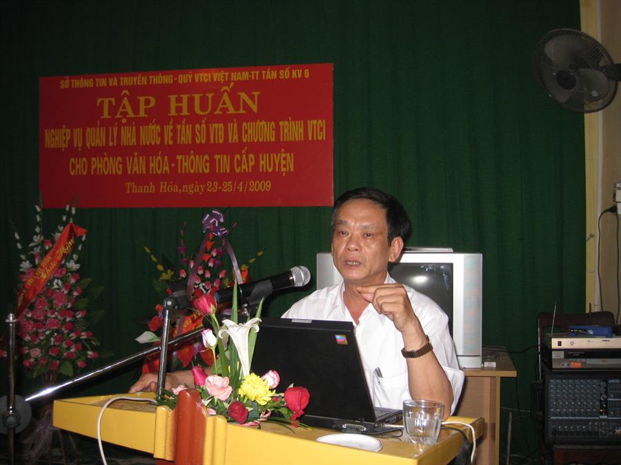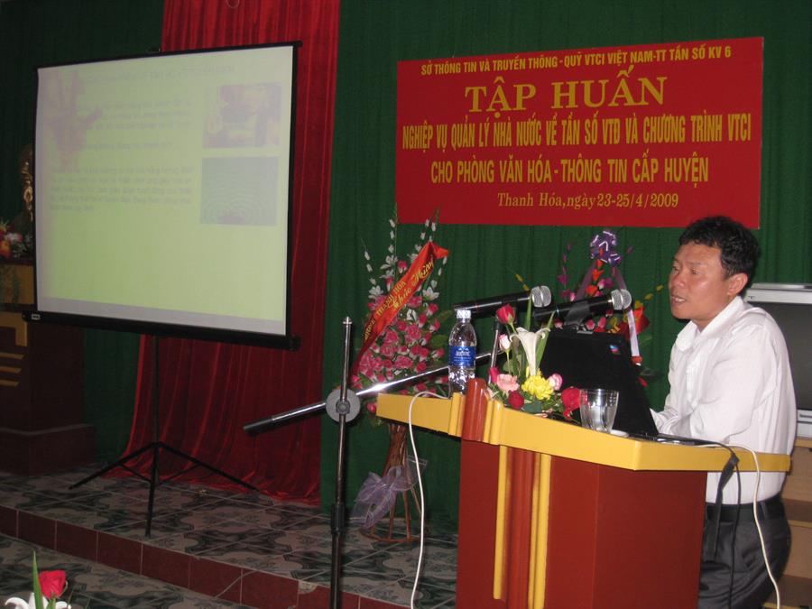 Đến dự với lớp tập huấn có các đồng chí Lãnh đạo Trung tâm tần số vô tuyến điện khu vực VI, Lãnh đạo Sở TT&TT Thanh Hóa. Lớp tập huấn nhằm hướng dẫn cho các cán bộ, chuyên viên Phòng văn hóa thông tin cấp huyện nắm được một số vấn đề cơ bản về lĩnh vực tần số vô tuyến điện như quản lý nhà nước về tần số VTĐ, cấp phép tần số VTĐ nói chung và truyền thanh không dây nói riêng…