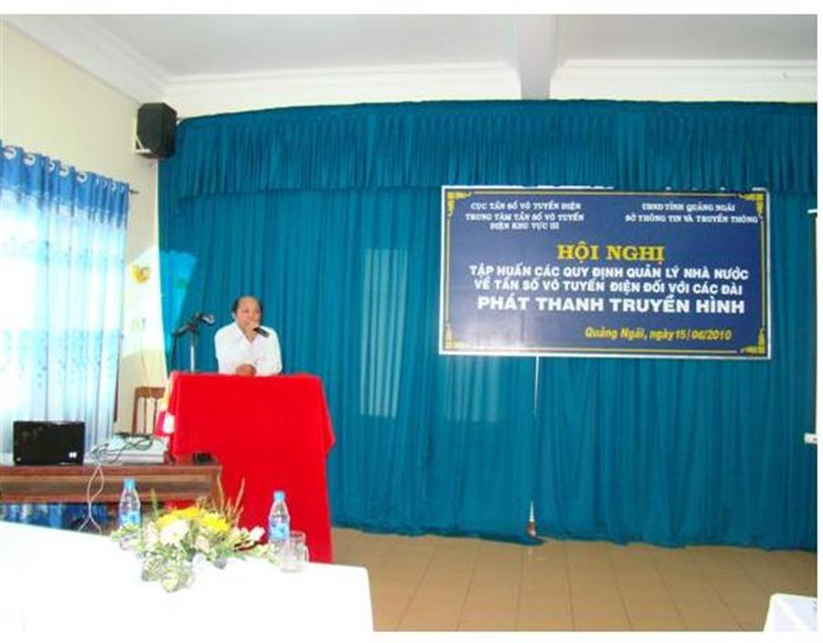 Buổi chiều cùng ngày, Trung tâm phối hợp với Sở Thông tin và Truyền thông tổ chức Hội nghị tập huấn cho Lãnh đạo và cán bộ phụ trách kỹ thuật của Đài PTTH tỉnh Quảng Ngãi; Lãnh đạo và cán bộ phụ trách kỹ thuật của 14 đài Truyền thanh và phát lại truyền hình cấp huyện trên địa bàn tỉnh Quảng Ngãi, ngoài ra các cán bộ trực tiếp quản lý về lĩnh vực viễn thông và tần số vô tuyến điện của Sở thông tin và Truyền thông tỉnh Quảng Ngãi cũng tham gia lớp tập huấn này.