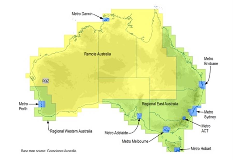 • Tám vùng đô thị —ACT, Adelaide, Brisbane, Darwin, Hobart, Melbourne, Perth, Sydney