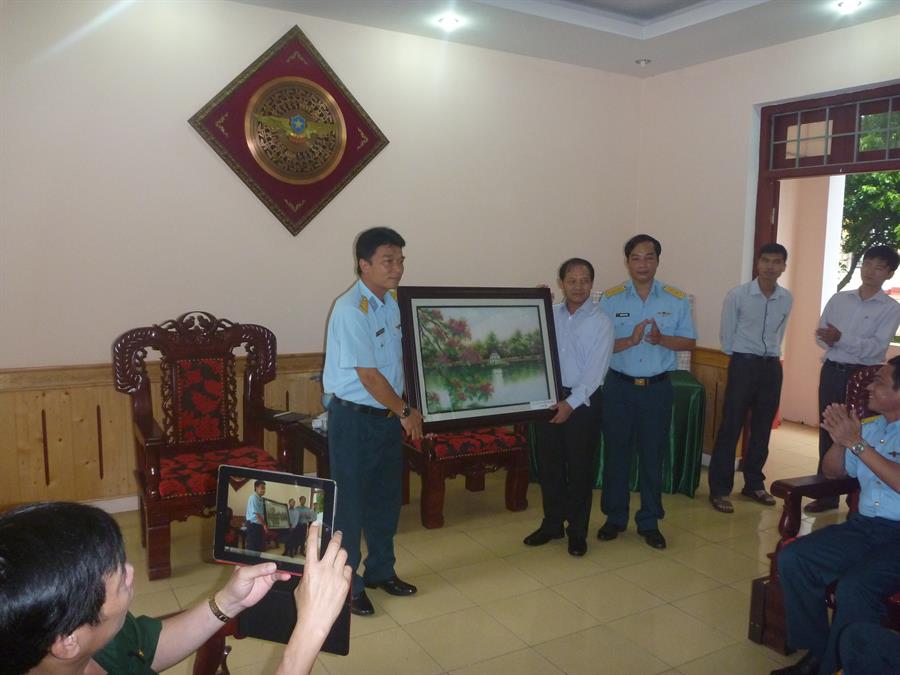Cũng nhân chuyến công tác tại tỉnh Thanh Hóa, Đoàn công tác của Ủy ban Tần số vô tuyến điện đã đến thăm và kiểm tra việc sử dụng tần số vô tuyến điện tại Trung đoàn Không quân 923 đóng tại Sân bay Sao Vàng, huyện Thọ Xuân, tỉnh Thanh Hóa. Tại đây, Đoàn công tác đã được chỉ huy Trung đoàn Không quân 923 báo cáo tình hình sử dụng tần số vô tuyến điện và đoàn đã đi kiểm tra thực tế các thiết bị, khí tài quân sự hiện đại của đơn vị. Thay mặt Đoàn công tác, đồng chí Đoàn Quang Hoan - Ủy viên Ủy ban Tần số vô tuyến điện, Cục trưởng Cục Tần số vô tuyến điện đã tặng Trung đoàn bức tranh về Hà Nội và viết vào sổ lưu niệm của Trung đoàn, trong đó có đoạn: “Ủy ban Tần số vô tuyến điện sẽ cùng với các đồng chí đảm bảo tốt nhất điều kiện về tần số vô tuyến điện, phục vụ sự nghiệp bảo vệ Tổ quốc xã hội chũ nghĩa Việt Nam”.