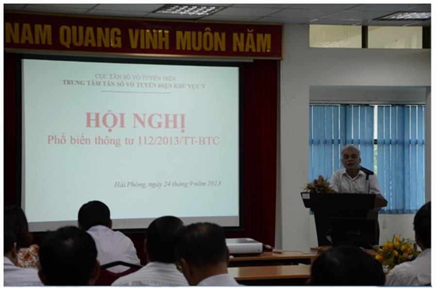 (rfd.gov.vn)- Thông tư 112/2013/TT-BTC quy định về mức thu, chế độ thu, nộp và quản lý sử dụng lệ phí cấp giấy phép sử dụng tần số vô tuyến điện và phí sử dụng tần số vô tuyến điện có hiệu lực kể từ ngày 01/10/2013 đã có nhiều thay đổi về cách thức thu phí, mức phí và lệ phí sử dụng tần số vô tuyến điện,…. Để tạo điều kiện thuận lợi cho việc triển khai thực hiện khi ngày có hiệu lực của Thông tư đã cận kề, ngày 24/9 Trung tâm Tần số vô tuyến điện khu vực V đã tổ chức hội nghị phổ biến nội dung của Thông tư nói trên đến người sử dụng tần số trên địa bàn thành phố Hải Phòng.