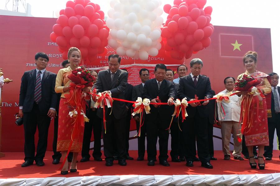 Cắt băng khánh thành Trạm kiểm soát tần số viễn thông Lào