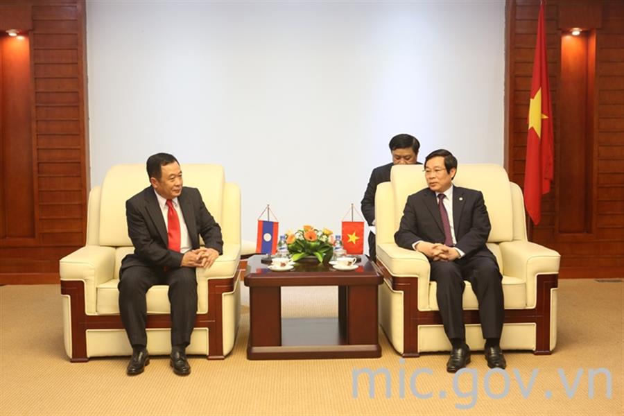 Bộ trưởng Nguyễn Bắc Son tiếp xã giao Thứ trưởng Bộ BC&VT Lào Thansamay Kommasith (Ảnh của mic.gov.vn)