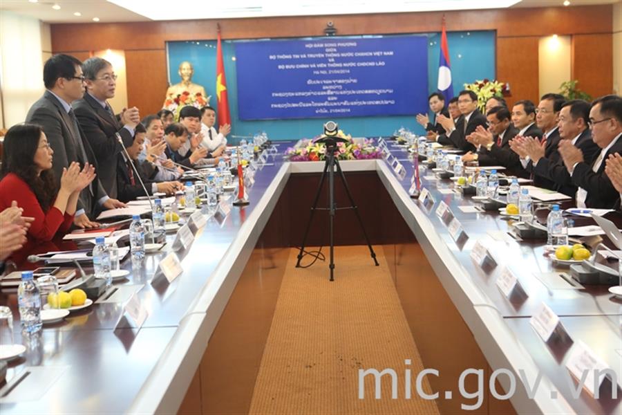 Toàn cảnh hội đàm giữa Bộ TT&TT Việt Nam và Bộ BC&VT Lào (Ảnh của mic.gov.vn)