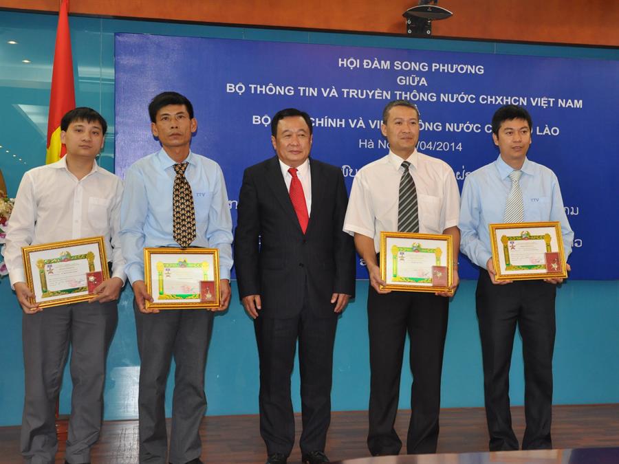 Tại cuộc Hội đàm song phương trao đổi kinh nghiệm giữa hai Bộ, ông Thansamay Kommasith, thừa ủy quyền của Chủ tịch nước và Thủ tướng Chính phủ nước Cộng hòa DCND Lào, đã trao tặng Huân chương, Huy chương hữu nghị cho 8 công chức của Cục Tần số VTĐ và 03 công chức của Trung tâm VNCERT, vì đã có thành tích xuất sắc, phối hợp chặt chẽ trong triển khai công tác phục vụ Hội nghị ASEM 9, được tổ chức vào tháng 11/2012 tại Thủ đô Viên Chăn - Lào, góp phần vào thành công của Hội nghị và tăng cường tình đoàn kết hữu nghị giữa hai nước Việt - Lào.