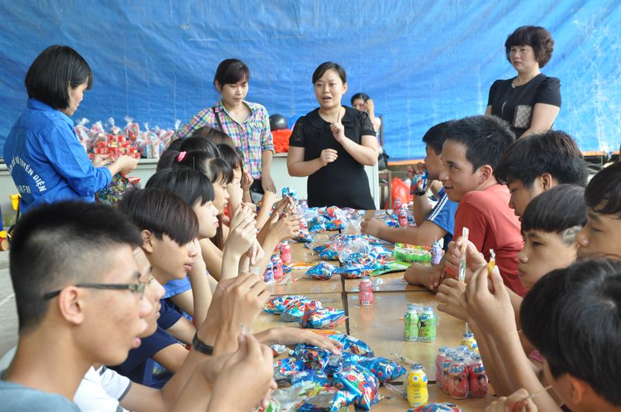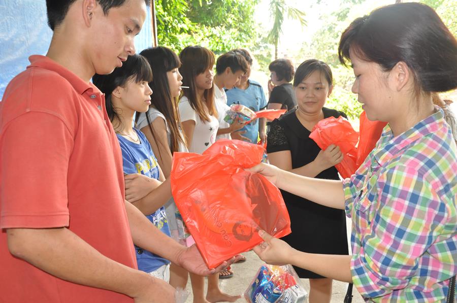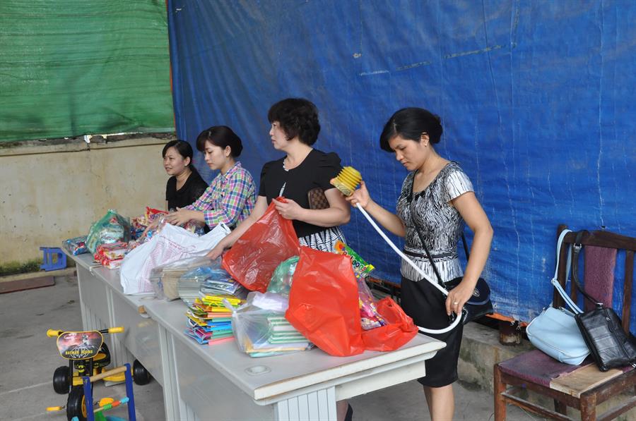 Các đoàn viên khẩn trương chuẩn bị cho buổi giao lưu và tặng quà