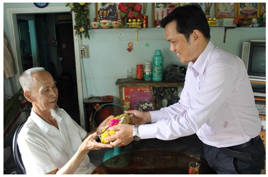 Tặng quà cho ông Nguyễn Vũ Hiệp – 80 tuổi, Thương bệnh binh hạng 2/4, trú tại 286/79B đường Cách mạng Tháng Tám – Thành phố Cần Thơ