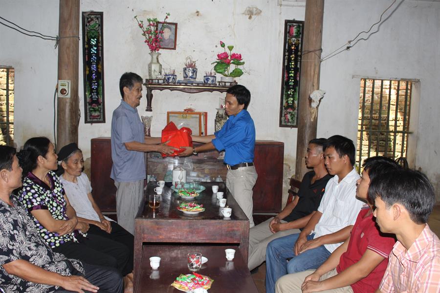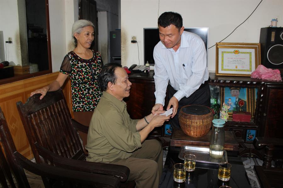 Thăm và tặng quà gia đình chính sách: ông Đỗ Tất Chửng là chiến sĩ pháo binh chiến dịch Điện Biên Phủ năm 1954, có bố là Liệt sĩ hy sinh trong kháng chiến chống Pháp.
