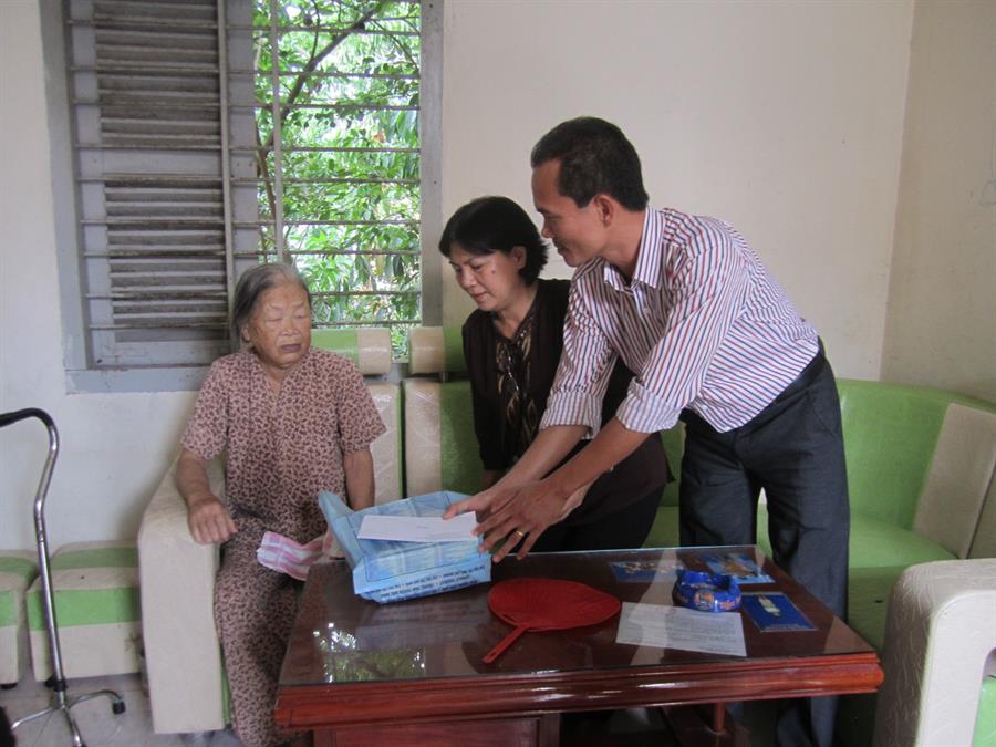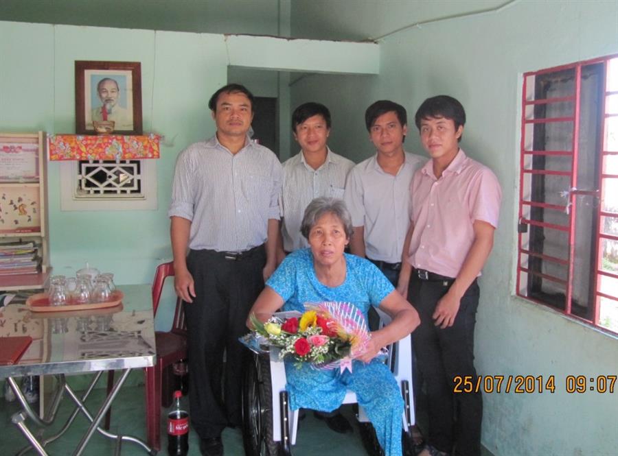 Tặng quà cho cô Nguyễn Thị Ngôn - Thương binh hạng 1/4 ở xã Điện Ngọc, huyện Điện Bàn, Quảng Nam - Nguyên là chiến sỹ giao bưu của mặt trận Quảng Đà trong thời kỳ kháng chiến chống Mỹ