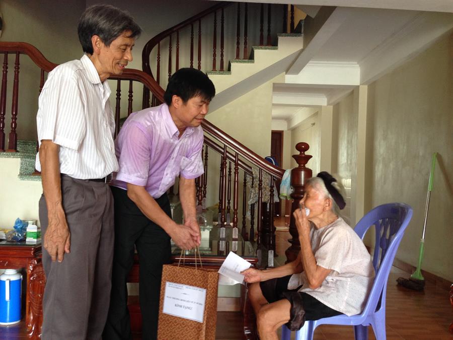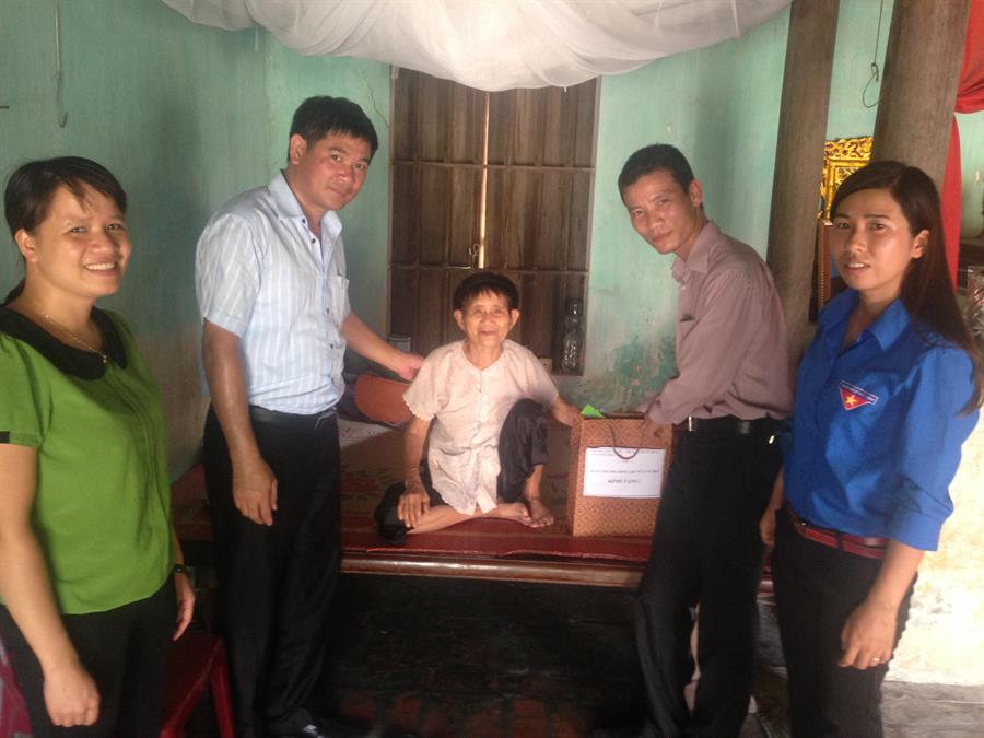 Thăm và tặng quà cho bà Vũ Thị Thiều, 84 tuổi, mẹ Liệt sĩ, thôn Lương Xá, xã Liên Bạt, huyện Ứng Hòa, Hà Nội. Bà Thiều còn có con trai là Thương binh, tham gia chiến đấu tại chiến trường Quảng Trị những năm kháng chiến chống Mỹ khốc liệt nhất