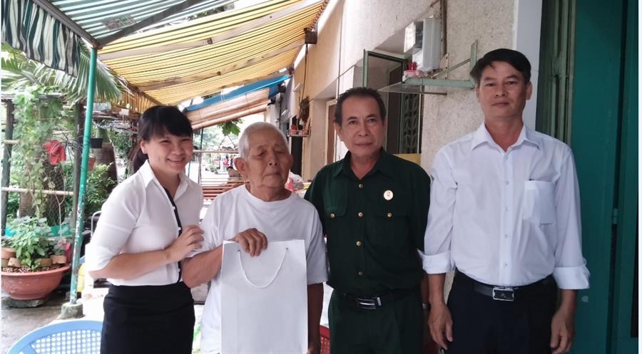 Chụp ảnh lưu niệm với ông Đoàn Quang - Thương binh phường Bình Trưng Đông, Quận 2, Thành phố Hồ Chí Minh