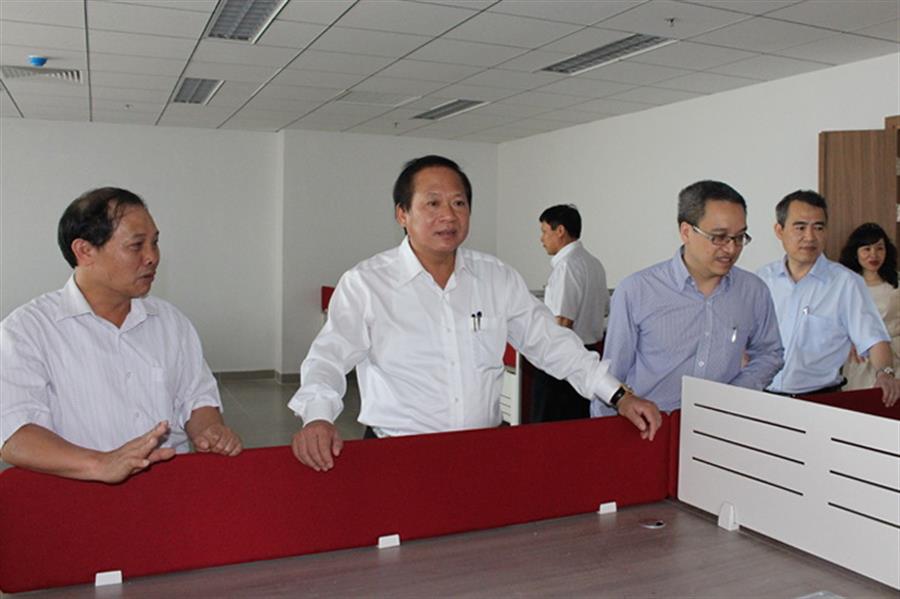 Trước đó, Bộ trưởng Trương Minh Tuấn và đoàn công tác của Bộ đã đi kiểm tra tiến độ triển khai Dự án mở rộng Trụ sở của Cục Tần số VTĐ, 115 Trần Duy Hưng, Hà Nội.