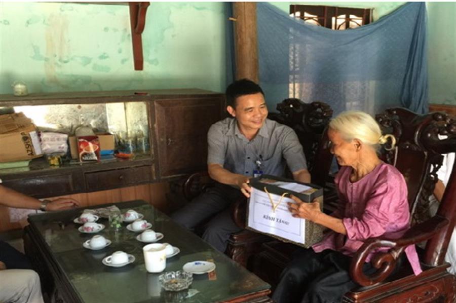 Thăm hỏi, tặng quà bà Trần Thị Đàn, thôn Hạ Sở, xã Hồng Sơn, có chồng hi sinh tại chiến trường Quảng Nam năm 1971, hiện chưa tìm thấy hài cốt.