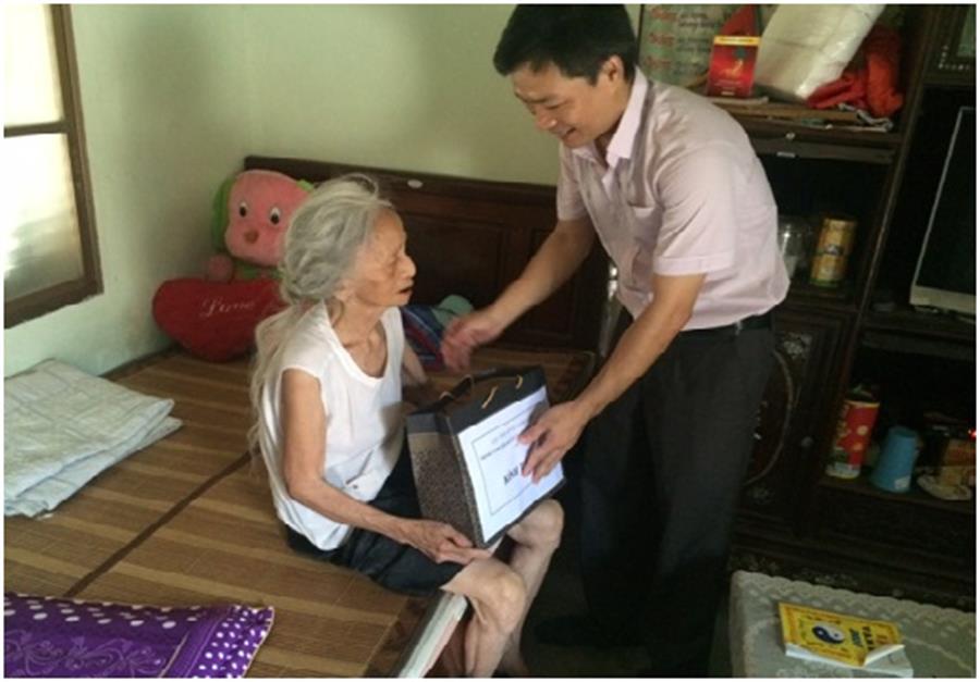 Thăm hỏi, tặng quà  cô Nguyễn Thị Ngôn, nguyên là chiến sỹ giao bưu năm 1967-1972 tại phường Điện Ngọc, thị xã Điện Bàn, tỉnh Quảng Nam - Thương bình hạng ¼.