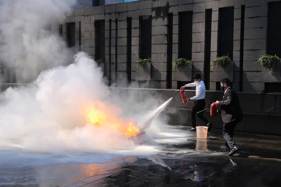 Thực hành dập tắt đám cháy giả  định bằng các loại bình chữa cháy