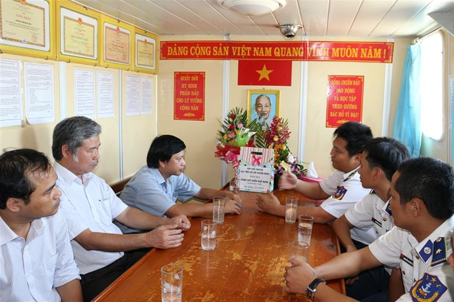 Tại thuyền Cảnh sát biển mang số hiệu CSB 2013, Thượng úy Hoàng Tuấn Anh-thuyền trưởng, gửi lời cảm ơn sâu sắc đến toàn thể CBCCVCCục Tần số vô tuyến điện. Ông cho biết thêm: Lực lượng Cảnh sát biển Việt Nam đang nêu cao tinh thần quyết tâm, giữ chắc tay lái, sẵn sàng hoàn thành tốt mọi nhiệm vụ, sát cánh cùng toàn thể nhân dân, cũng như lực lượng Kiểm ngư, bào vệ vững chắc chủ quyền biển đảo Tổ quốc. Tàu CSB nhận nhiệm vụ phối hợp cùng lực lượng Kiểm ngư, và các lực lượng chấp pháp trên biển khác của Việt Nam, tiến hành áp sát giàn khoan của Trung Quốc, thông báo hành động của họ là vi phạm luật biển quốc tế, yêu cầu họ rút ngay giàn khoan. Trong thời gian 12 ngày làm nhiệm vụ, vào ngày 18/5/2014tàu CSB 2013 của ta bị tàu Trung Quốc đâm mạnh, gây hư hỏng:Lan can mạn phải của tàu bị gãy, hỏng ống thông gió trên tàu.. Hiện đang tàu đang được gấp rút sửa chữa và sớm tở lại thực hiện nhiệm vụ chấp pháp trên biển.