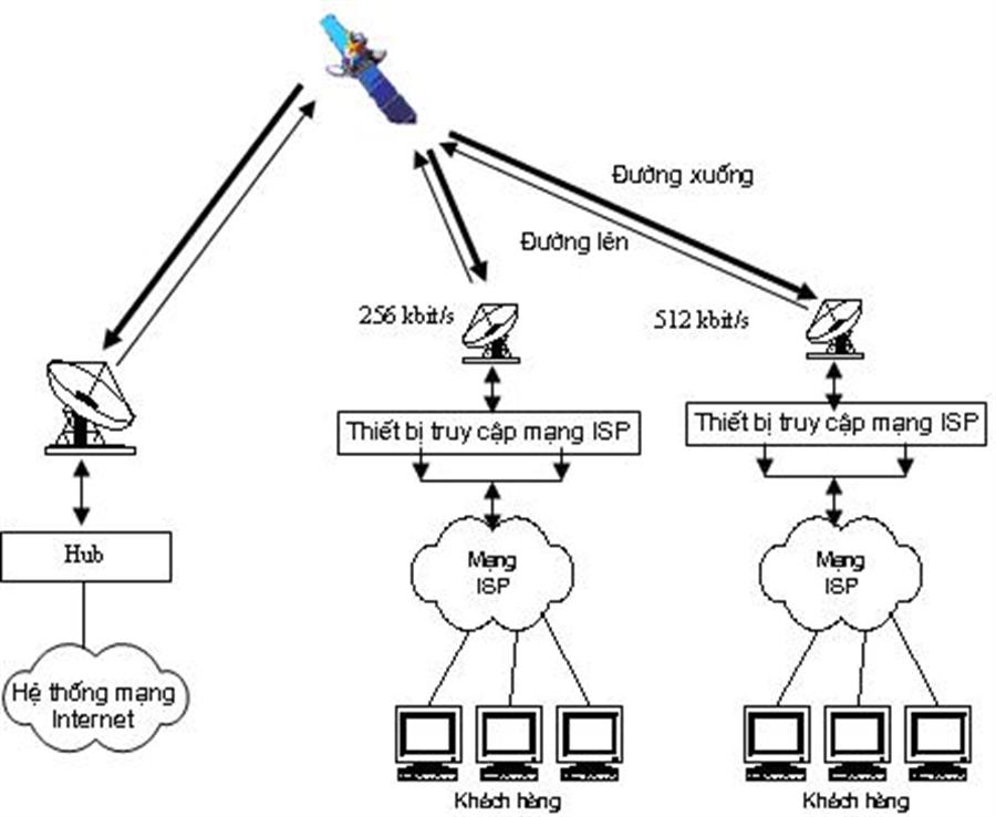 Hình 1. Mô hình cung cấp dịch vụ Internet qua vệ tinh cho những khu vực nhỏ.