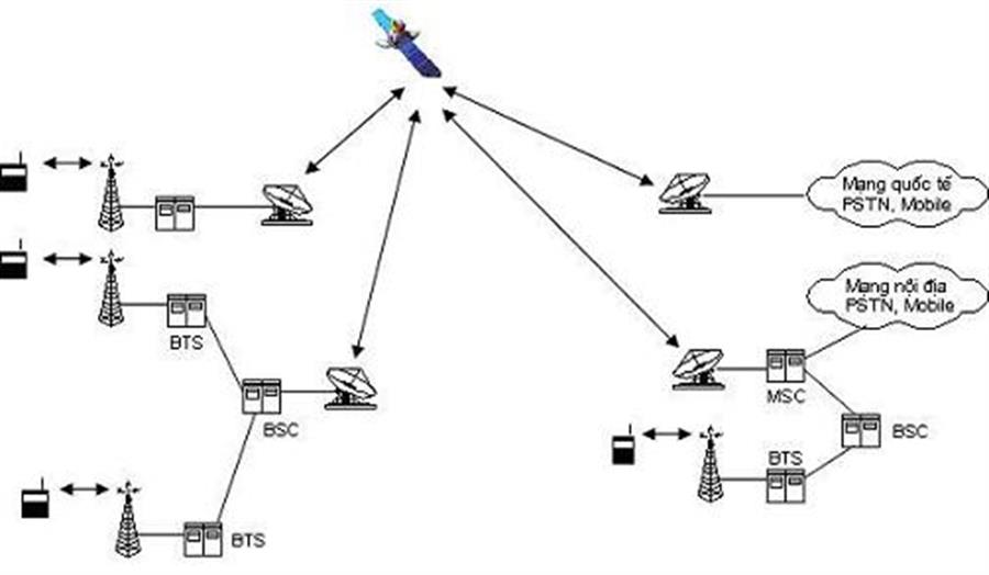 Hình 3. Các thành phần chính cho cơ sở hạ tầng mạng di động qua vệ tinh