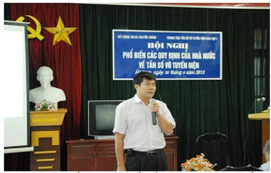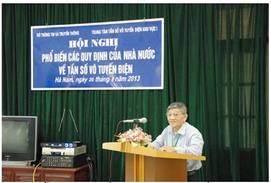 Ông Đoàn Bình, Giám đốc Trung tâm Tần số VTĐ khu vực I phát biểu tại hội nghị tại Hà Nam